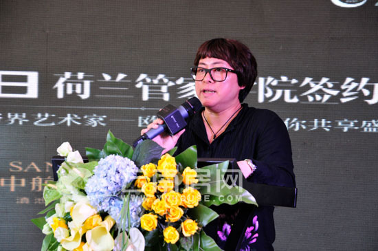 下午2點,簽約儀式正式開始,荷蘭管家學院創始人羅伯特威廉斯、香港生活夢想藝術家歐陽應霽、云南尚居房地產副總經理白云等領導及嘉賓出席了此次活動。活動以中航云璽大宅的項目宣傳片拉開序幕,隨后,云南尚居房地產副總經理白云上臺致辭。白云說中航云璽大宅一直是有品質的豪宅,而荷蘭管家學院也是歐洲頂級的代表和象征,相信我們的強強聯合,將為中航云璽大宅業主提供更高端的服務。