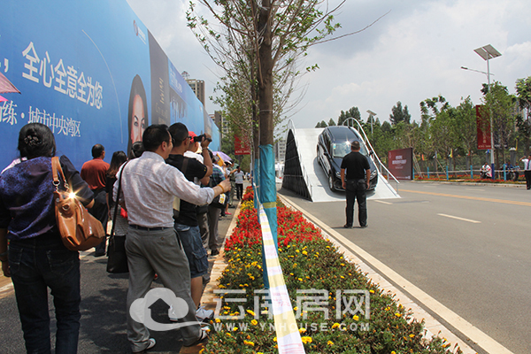 今日下午14:10分,天氣晴好,陽光燦爛,云南房網小編隨看房車一同到達德潤·朗悅灣營銷中心,下車便看到營銷中心外圍布置的試駕場地——正向拱橋、35°側向斜坡、波浪雙邊等極限刺激的越野項目,有看房團成員看到試駕信息及停放的途銳汽車激動地問可否試駕。
