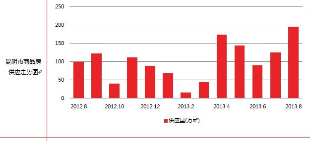 隨著八月份昆明雨季的到來,昆明樓市交易量隨著氣溫的降低有所回落,為了緩和昆明樓市前幾個月的紅火態勢,八月份樓市銷售業績正常下落。8月昆明主城區及呈貢新城共成交各類商品房8872套,環比下降16.44%;商品房成交總面積為73.41萬㎡,環比下降23.22%。隨著昆明旅游旺季的結束,外來購房者的減少,8月份商品房成交量有所下降。本月昆明主城四區及呈貢新區商品房新增供應面積為195.96萬㎡創近二十個月新高,環比上升55.81%。