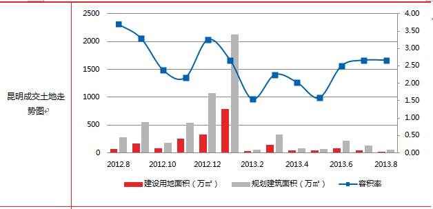 8月昆明市共成交13宗土地,成交面積約22.81萬㎡,環比7月減少2539萬㎡,跌幅達52.68%,比去年同期減少51.29萬㎡,跌幅達69.22%。本月土地成交總金額約6億元,土地成交單價為175萬元/畝,環比下降17.06%。其中昆明主城區共成交7宗地塊,成交面積為15.84萬㎡(折合237.55畝),成交總價約5.53億元,此次成交的7宗地塊中,2宗地塊為住宅用地,約6.37萬㎡,2宗地塊為商業用地,約3.46萬㎡。