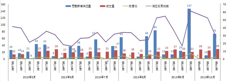 本周市場新增供應(yīng)73.12萬方,成交面積28.77萬方,批售比為2.54。
