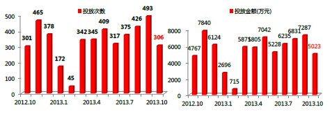 圖8-2-1:2012年10月至2013年10月平面媒體投放量走勢