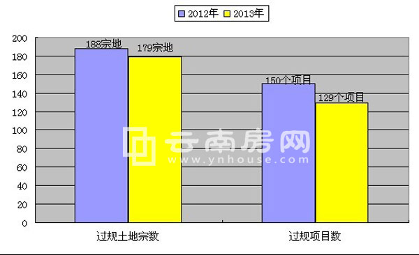 據云南房網統計,2013年1月—12月,昆明市規劃局共計審批公示住宅、商業、商住一體用地、教育用地等主要業態土地179宗,除去同項目名不同地塊項目,共計位129個,總過規凈用地面積達929.8564992萬方,總過規建筑面積達2950.5376949萬方,同比2012年過規的主要業態總建面3302.9564355萬方,2013年公示總建面同比減少10.67%。