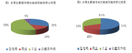 五、本周主要城市推出與成交地塊用地性質比例情況