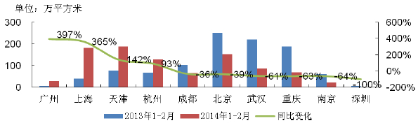 圖2:2014年1-2月10重點城市住宅用地成交情況
