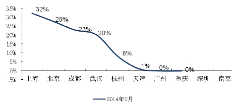 圖3:2014年2月10重點城市住宅用地溢價水平變化情況