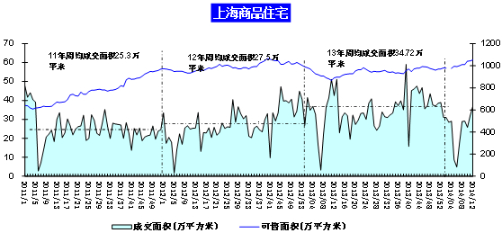 2013年上海首季度成交量漲幅明顯,一路走高。進入二季度出現下降,二季度末持續上升突破40萬平方米水平。進入三季度成交縮量下滑,后成交持續上漲,季度末成交量達到交高水平。四季度成交呈現波動下降趨勢。2014年成交持續小幅下降趨勢,1月末2月初受春節假期影響成交大跌,但進入第7周以來,除第10周成交有小幅波動外,近期成交持續上升趨勢。