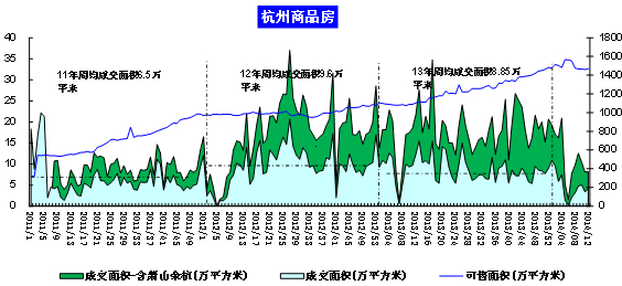 注:自2011年第8周起,杭州統計范圍擴大至內城8區及蕭山、余杭(即圖中綠色部分)