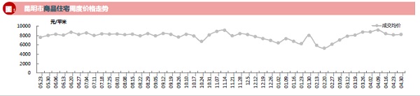 本周盤龍區成交均價較上周環比下跌9.07%,五華區略漲5.08%;其余各區起伏不大。