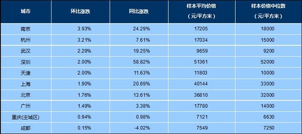 十大城市(新建)住宅價格漲跌情況