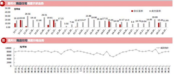 本周全市各區商品住宅成交價格與較上周略漲,呈貢區和盤龍區分別下跌4.16%、2.31%;官渡區漲幅達13.56%。