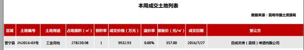 本周土地供應(yīng)七宗,主要位于昆明主城官渡區(qū)和晉寧縣,包含工業(yè)用地、城鎮(zhèn)住宅兼容批發(fā)零售、住宿餐飲、商務(wù)金融用地及城鎮(zhèn)住宅用地;土地成交一宗,位于晉寧縣,土地用途為工業(yè)用地。