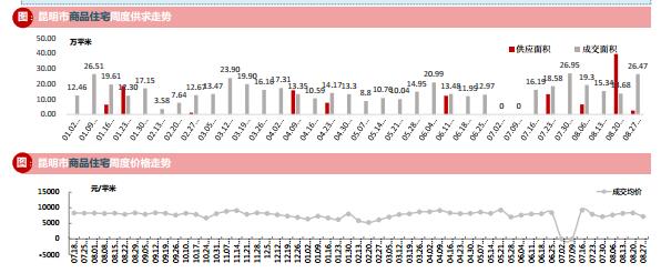 本周昆明全市成交面積37.30萬㎡,環比上漲110.40%,成交套數為2784套,環比上漲94.14%;成交均價8047元/㎡,環比下跌14.09%。