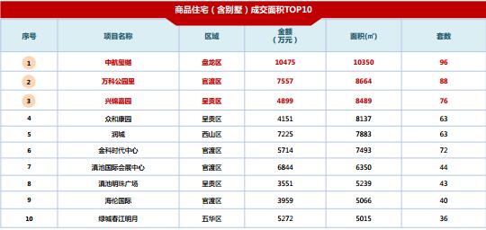 點評:本周中航璽樾連續(xù)兩周獲得榜單冠軍,萬科公園里排名第二;呈貢區(qū)有興錦嘉園、眾和康園滇池明珠廣場三個項目上榜。