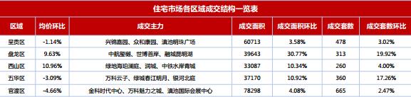 本周全市商品住宅成交整體上漲,其中盤龍區漲幅最大,達30.77%,其次為西山區和五華區,分別上漲10.34%、 10.92%。本周全市商品住宅成交均價盤龍區和西山區分別上漲9.63%及10.96%;呈貢區、五華區、官渡區分別下滑1.14%、 3.09%及4.66%。