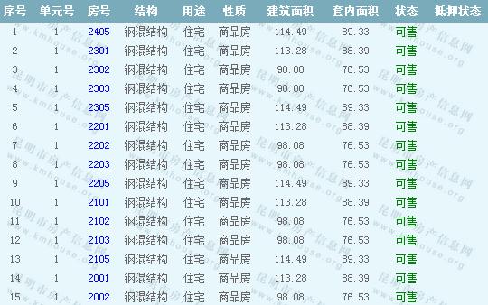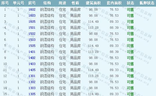 16棟準(zhǔn)售房源信息: