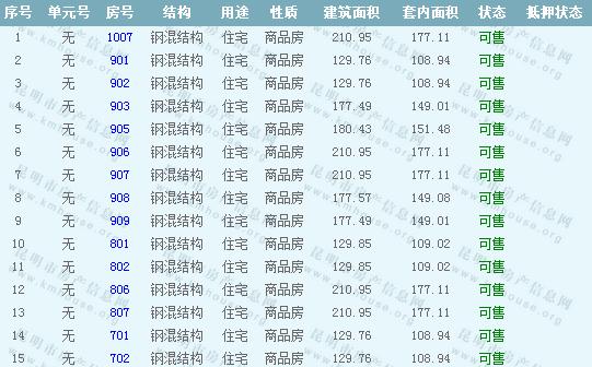 依據《云南省商品房銷售明碼標價實施細則》,商品房經營者應當在商品房交易(銷售)場所的醒目位置放置標價牌、價目表或者價格手冊,有條件的可同時采取電子信息屏、多媒體終端或電腦查詢等方式。商品房銷售明碼標價應當做到價目齊全,標價(示)內容真實明確、字跡清晰、標示醒目,并標示價格主管部門12358投訴舉報電話。俊發逸天峰(2號地塊)Ⅰ9棟準售房源信息如下:
