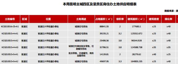 本周昆明主城四區及呈貢區商住辦土地供應6宗,占地面積為25.01萬㎡,建筑面積為71.67萬㎡;其中4宗城鎮住宅用地,1宗商住用地,1宗商業用地,均位于主城官渡區。