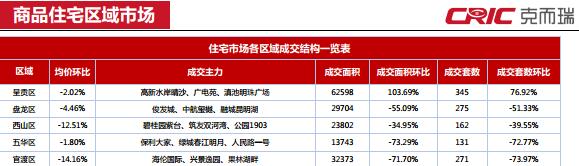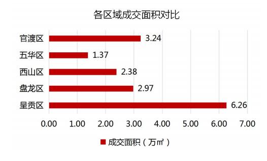 本周全市商品住宅成交量整體下降,除呈貢區(qū)逆勢上漲103.69%以外,其余四區(qū)均有所下跌,其中五華區(qū)跌幅達(dá)73.29%。本周全市商品住宅成交價格受呈貢項目的影響而整體走低,其中西山區(qū)下跌12.51%,官渡區(qū)跌幅14.16%。