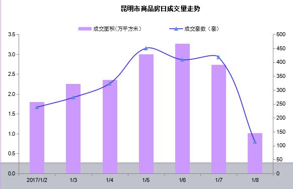 本周(01.09-01.15)昆明日均成交398套商品房,日均成交面積為3.17萬㎡。