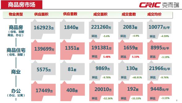 本周商品住宅成交面積19.14萬(wàn)方,環(huán)比上漲5.48%;成交套數(shù)為1659套,隨之上漲5.33%。本周商品住宅成交均價(jià)為8995元/㎡,環(huán)比下降