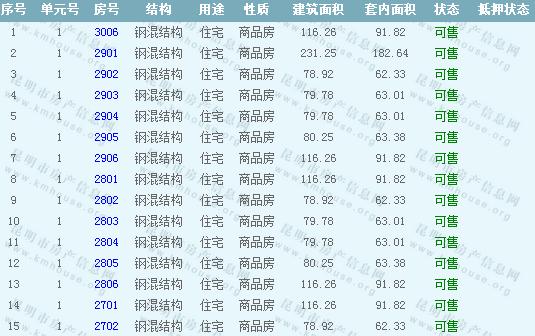 依據《云南省商品房銷售明碼標價實施細則》,商品房經營者應當在商品房交易(銷售)場所的醒目位置放置標價牌、價目表或者價格手冊,有條件的可同時采取電子信息屏、多媒體終端或電腦查詢等方式。商品房銷售明碼標價應當做到價目齊全,標價(示)內容真實明確、字跡清晰、標示醒目,并標示價格主管部門12358投訴舉報電話。金泰國際二期凱佩(棲城麗景小區)準售房源信息如下: