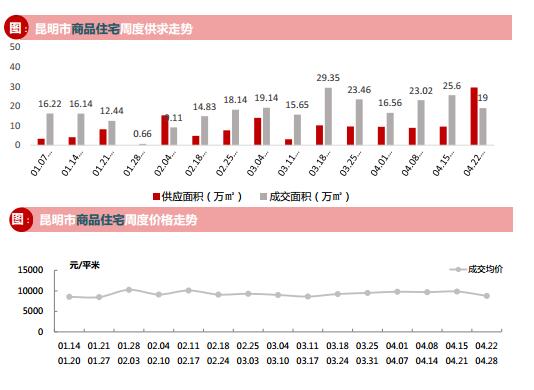 本周昆明主城四區及呈貢區商住辦土地供應6宗,占地面積為23.68萬㎡,建筑面積72.19萬㎡;土地成交1宗,占地面積0.18萬方,建筑面積0.96萬方。