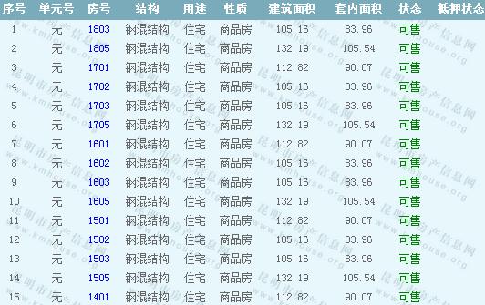 依據(jù)《云南省商品房銷售明碼標價實施細則》,商品房經(jīng)營者應(yīng)當在商品房交易(銷售)場所的醒目位置放置標價牌、價目表或者價格手冊,有條件的可同時采取電子信息屏、多媒體終端或電腦查詢等方式。商品房銷售明碼標價應(yīng)當做到價目齊全,標價(示)內(nèi)容真實明確、字跡清晰、標示醒目,并標示價格主管部門12358投訴舉報電話。萬科云子A3地塊6棟準售房源信息如下: