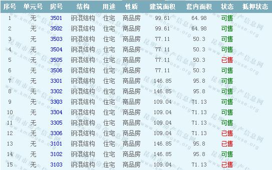 依據(jù)《云南省商品房銷(xiāo)售明碼標(biāo)價(jià)實(shí)施細(xì)則》,商品房經(jīng)營(yíng)者應(yīng)當(dāng)在商品房交易(銷(xiāo)售)場(chǎng)所的醒目位置放置標(biāo)價(jià)牌、價(jià)目表或者價(jià)格手冊(cè),有條件的可同時(shí)采取電子信息屏、多媒體終端或電腦查詢(xún)等方式。商品房銷(xiāo)售明碼標(biāo)價(jià)應(yīng)當(dāng)做到價(jià)目齊全,標(biāo)價(jià)(示)內(nèi)容真實(shí)明確、字跡清晰、標(biāo)示醒目,并標(biāo)示價(jià)格主管部門(mén)12358投訴舉報(bào)電話(huà)。中航璽樾(A3地塊)Ⅰ1棟、2棟準(zhǔn)售房源信息如下: