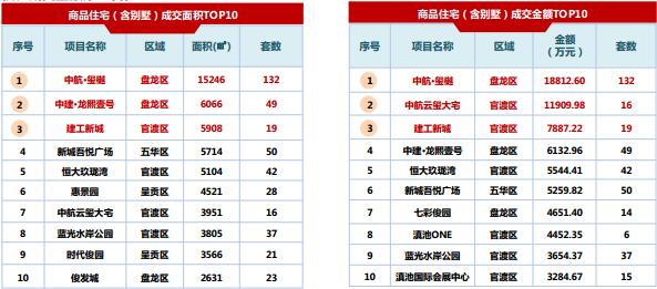 本周中航·璽樾接替俊發城成為成交面積、成交金額雙料冠軍,中建龍熙壹號和中航云璽大宅分別成為成交面積、成交金額第二名。