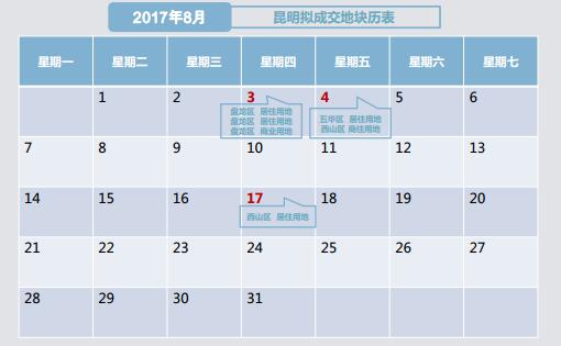 從各區域來看,本周五華區綠城春江明月、保利大家、融創春風十里等項目集中備案,共計成交4.13萬方,占全市成交32%,排名區域第一;其次為官渡區4.02萬方,占全市成交31%,主要是海倫國際、滇池國際會展中心等項目集中備案。其次西山區、盤龍區、呈貢區成交量分別占全市成交的14%、 12%和10%。