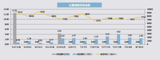 商品房市場:近期樓市火熱,本周供應持續減少,成交繼續回落,成交均價環比上漲4%。