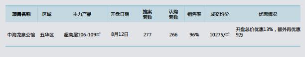 8月12日,中海龍泉公館2、 3、 4號樓開盤,共推出277套,銷售266套,去化率96%。小高層144-150㎡,超高層84-141㎡,交通通達便利,戶型實用性高,周邊配套完善,品牌房企。