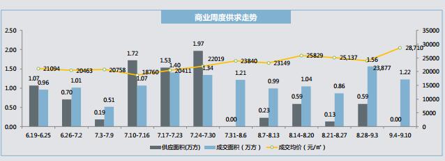 本周成交以官渡區(qū)大型商業(yè)綜合體和呈貢核心區(qū)商業(yè)為支撐,供應為零,成交有所回落,成交均價明顯上浮。