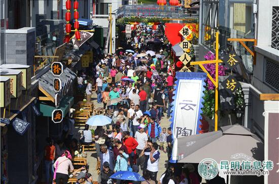 10月1日,在陣陣的禮炮聲中,茶馬花街街門緩緩打開,正式開街迎接八方來客。國慶小長假期間,市民及游客在這里不僅能吃到云南各色民間小吃,每天還有舞龍舞獅、樂隊演出、民族歌舞等各類精彩活動依次登場。