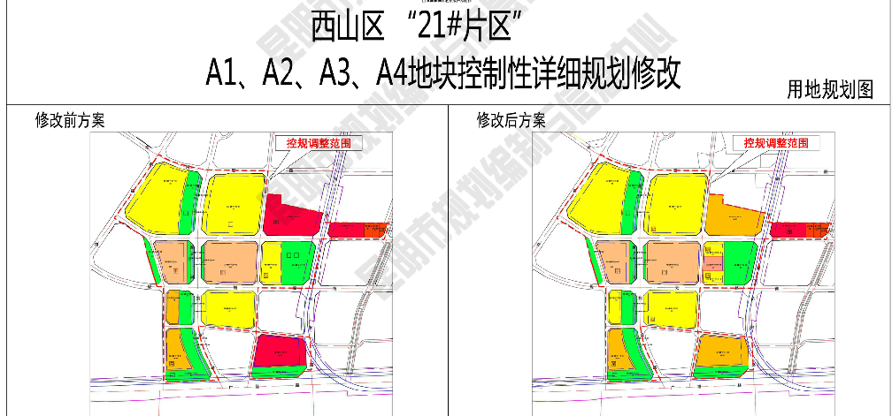 《西山區(qū)“21#片區(qū)”A1、A2、A3、A4地塊控制性詳細(xì)規(guī)劃修改》于2017年9月29日經(jīng)昆明市城鄉(xiāng)規(guī)劃委員會(huì)審議通過(guò),主要進(jìn)行以下調(diào)整整:1.XS-QW-F-03-01由B1調(diào)整為R2/B1/B2;2.XS-QW-F-07-01由R2調(diào)整為R2和A2用地;3.XS-QW-F-09-01由RB調(diào)整為R2;4.XS-QW-F-14-01由B1/B2調(diào)整為R2/B1/B2。