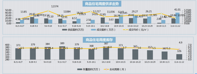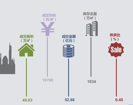 住宅市場供求比為0.48,供應量增長,但依然供不應求,存量去化周期不足5個月。