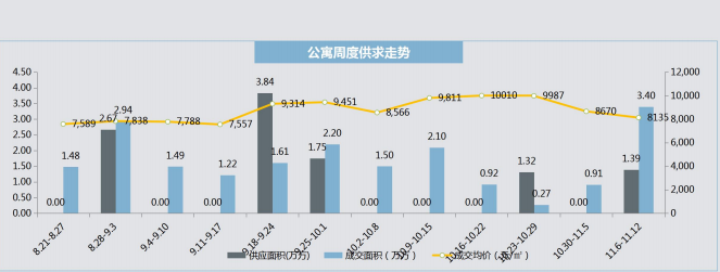 本周公寓供應1.39萬方,供應項目為碧桂園鳳凰灣