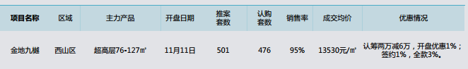 本周開盤項目1個,推出體量5.05萬方,成交4.87萬方,本周面積去化率為96.4%