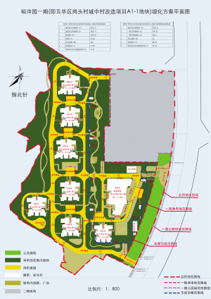 項目名稱:崗頭村城中村改造項目A1-1地塊(裕灃園一期)綠化工程設計方案