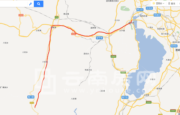 目前昆明至易門大致行車線路