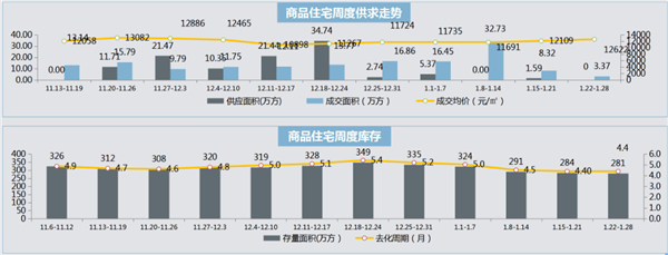 本周持續(xù)供不應(yīng)求,存量持續(xù)消化,存量下降至281萬方,去化周期4.4個月。