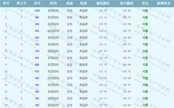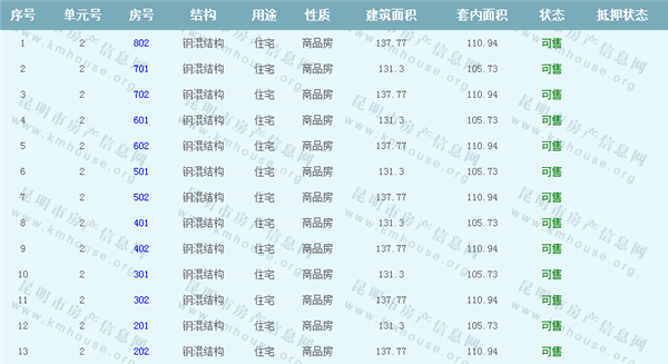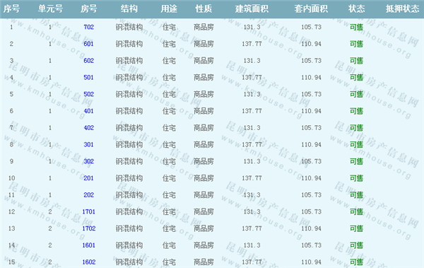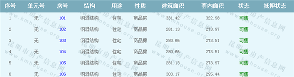 依據《云南省商品房銷售明碼標價實施細則》,商品房經營者應當在商品房交易(銷售)場所的醒目位置放置標價牌、價目表或者價格手冊,有條件的可同時采取電子信息屏、多媒體終端或電腦查詢等方式。商品房銷售明碼標價應當做到價目齊全,標價(示)內容真實明確、字跡清晰、標示醒目,并標示價格主管部門12358投訴舉報電話。云秀康園7號院Ⅰ準售房源信息如下: