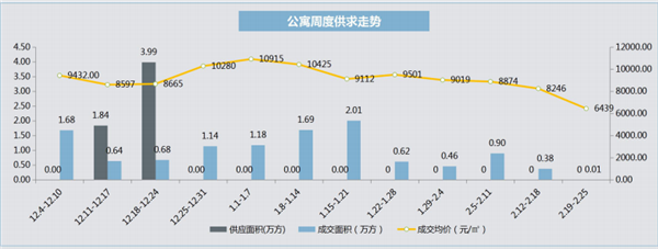 本周主城區(qū)商品房市場(chǎng)無(wú)供應(yīng),春節(jié)前一周集中放量27.31萬(wàn)方,本周遇春節(jié)假期,無(wú)新增工銀