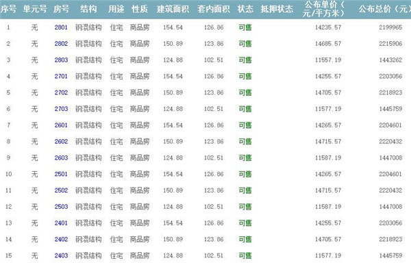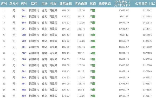 根據(jù)云南省物價局關(guān)于發(fā)布《云南省商品房銷售明碼標價實施細則(試行)》的通知,現(xiàn)將該項目商品住房的準售房源及每套房屋價格向社會公布,房地產(chǎn)開發(fā)企業(yè)應嚴格按照公布價格,商品房銷售明碼標價實行一套一標。商品房經(jīng)營者應當對每套商品房按照建筑面具進行明碼標價,否則,房產(chǎn)登記機關(guān)不予登記備案。準售房源及房價信息如下: