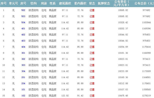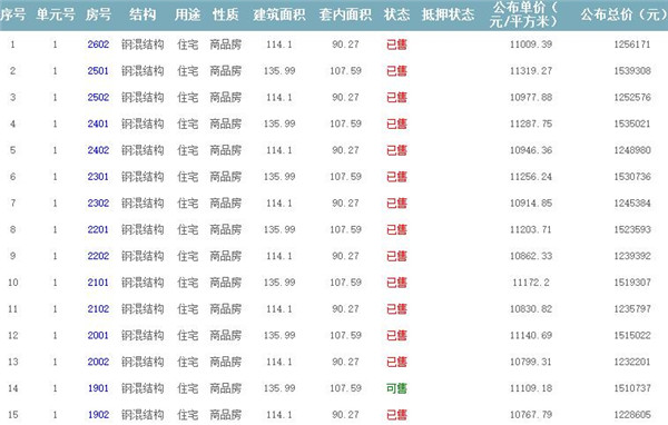 根據云南省物價局關于發布《云南省商品房銷售明碼標價實施細則(試行)》的通知,現將該項目商品住房的準售房源及每套房屋價格向社會公布,房地產開發企業應嚴格按照公布價格,商品房銷售明碼標價實行一套一標。商品房經營者應當對每套商品房按照建筑面具進行明碼標價,否則,房產登記機關不予登記備案。準售房源及房價信息如下: