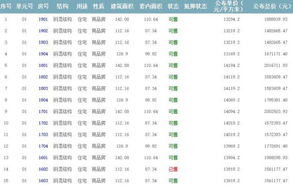 根據云南省物價局關于發布《云南省商品房銷售明碼標價實施細則(試行)》的通知,現將該項目商品住房的準售房源及每套房屋價格向社會公布,房地產開發企業應嚴格按照公布價格,商品房銷售明碼標價實行一套一標。商品房經營者應當對每套商品房按照建筑面具進行明碼標價,否則,房產登記機關不予登記備案。準售房源及房價信息如下: