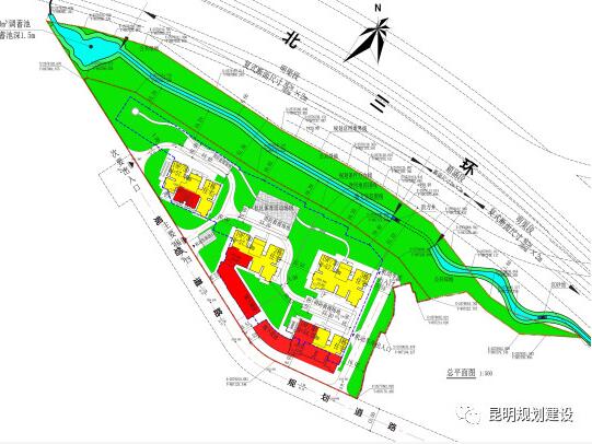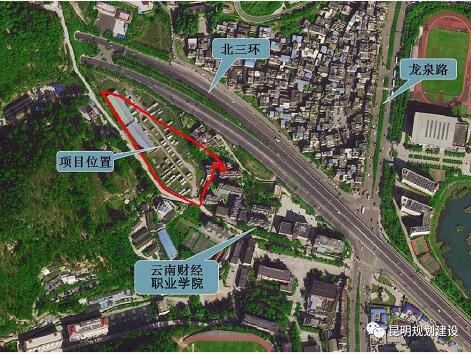 本項目用地東臨云南財經職業學院,南到規劃道路,西臨長蟲山,北臨北三環路;項目地塊內有一定高差,為五華區崗頭村城中村改造項目地塊之一。該地塊規劃4棟高層住宅,并規劃有部分沿街商業。擬建地上建筑退讓財經學校防洪溝大于等于15m,地下建筑退讓財經學校防洪溝大于等于7.5m。