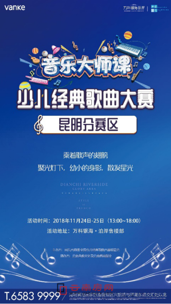 踞滇池西山,瀕盤龍江水,承會(huì)展發(fā)展,鄰四大商圈,享立體路網(wǎng),萬科·銀海泊岸以滇池洋房標(biāo)桿之姿、城市純洋房住區(qū)優(yōu)勢,始終致力于小區(qū)乃至社區(qū)的文娛建設(shè),先后多次舉辦少兒鋼琴大賽等全城藝術(shù)賽事。項(xiàng)目推崇的滇池洋房夢想生活理念與本次音樂大師課全國少兒經(jīng)典歌曲大賽的主題不謀而合。昆明海選賽區(qū)定于萬科·銀海泊岸營銷中心。屆時(shí)舞臺(tái)精彩紛呈,少年們各展風(fēng)采,將經(jīng)典傳唱,將人生體驗(yàn)盡展。