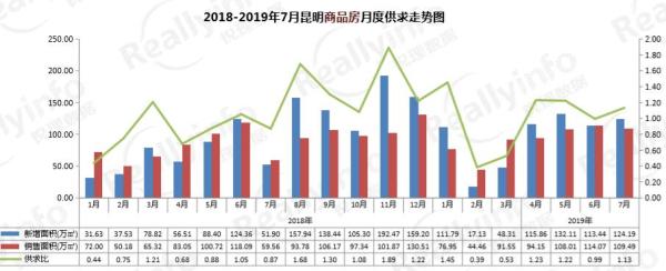 本月商品房新增面積124.19萬方,環比上漲9.47%,同比上漲139.27%;銷售面積109.49萬方,環比下降4.01%,同比上漲 83.83%;供求比為1.13。